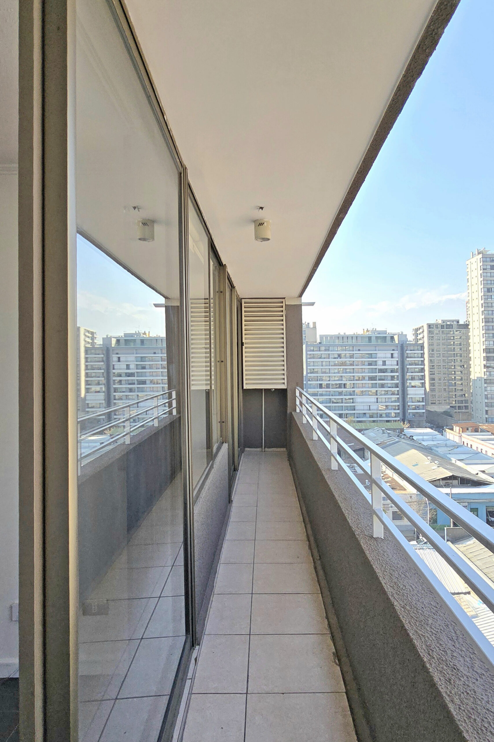 Cuenta con un balcón que recorre todo el largo del departamento, otorgando ventilación y luz natural.