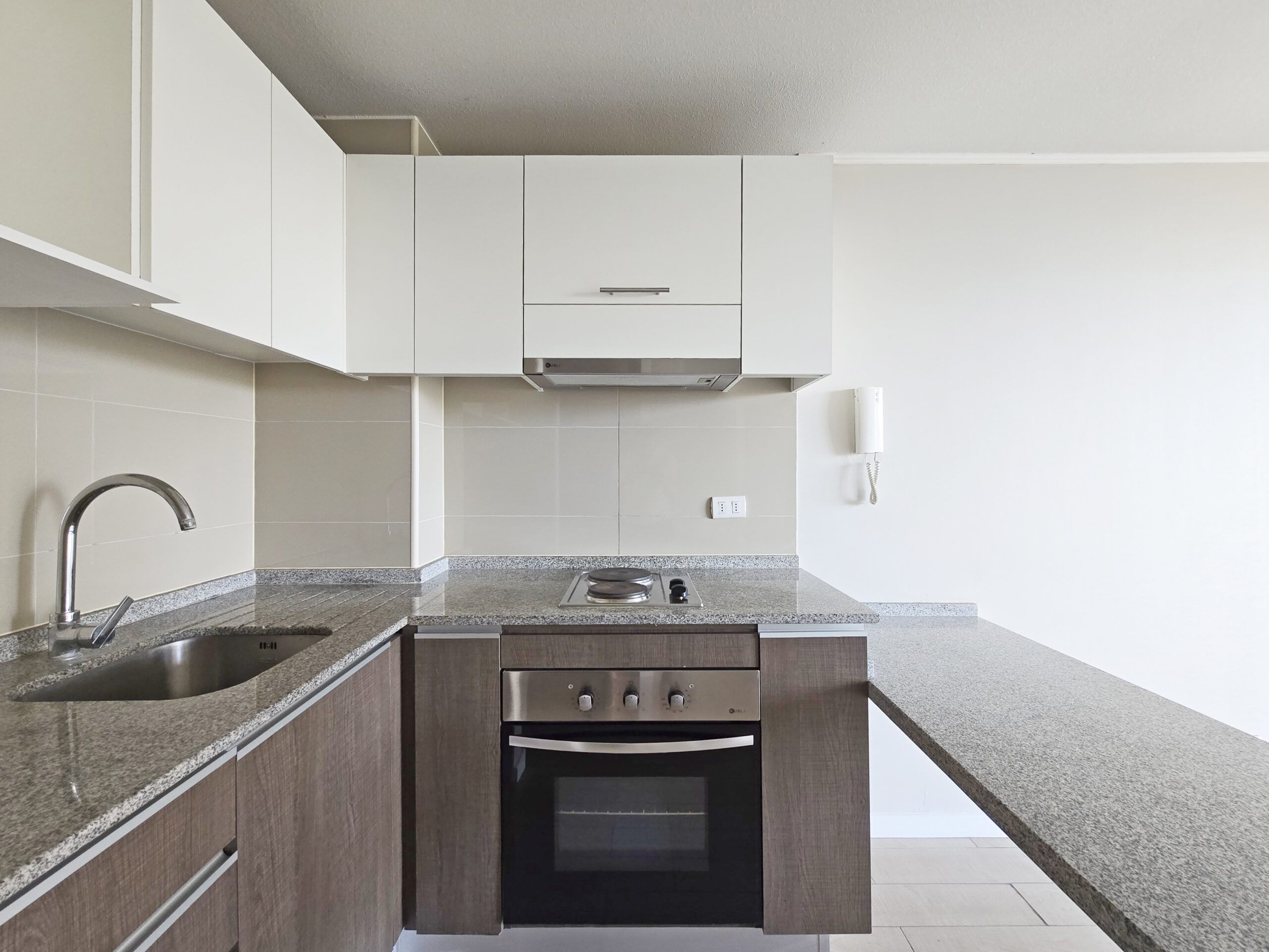 -Cocina equipada con mesones de granito en excelente estado, de fácil mantenimiento.
